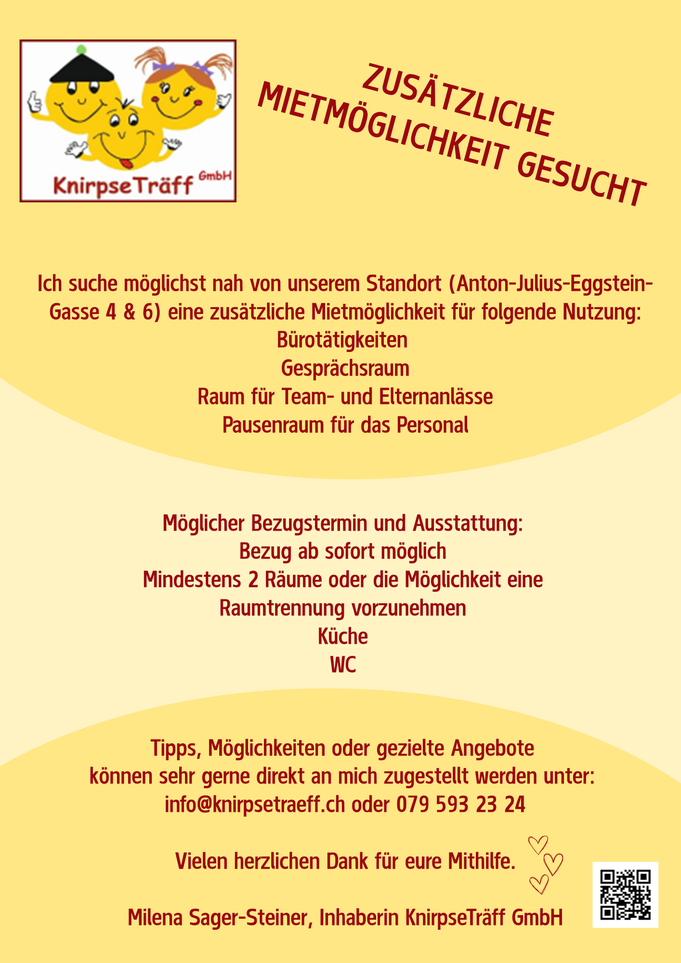 Mail: info@knirpsetraeff.ch (Milena Sager-Steiner, Inhaberin KnirpseTräff GmbH)